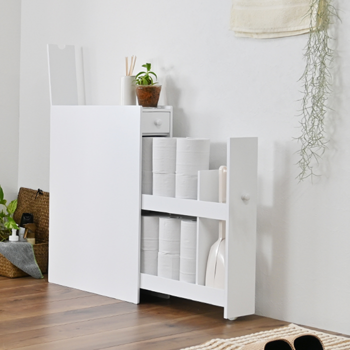 トイレットペーパーやブラシなどをまとめて収納することが可能なラックを取り扱っております。